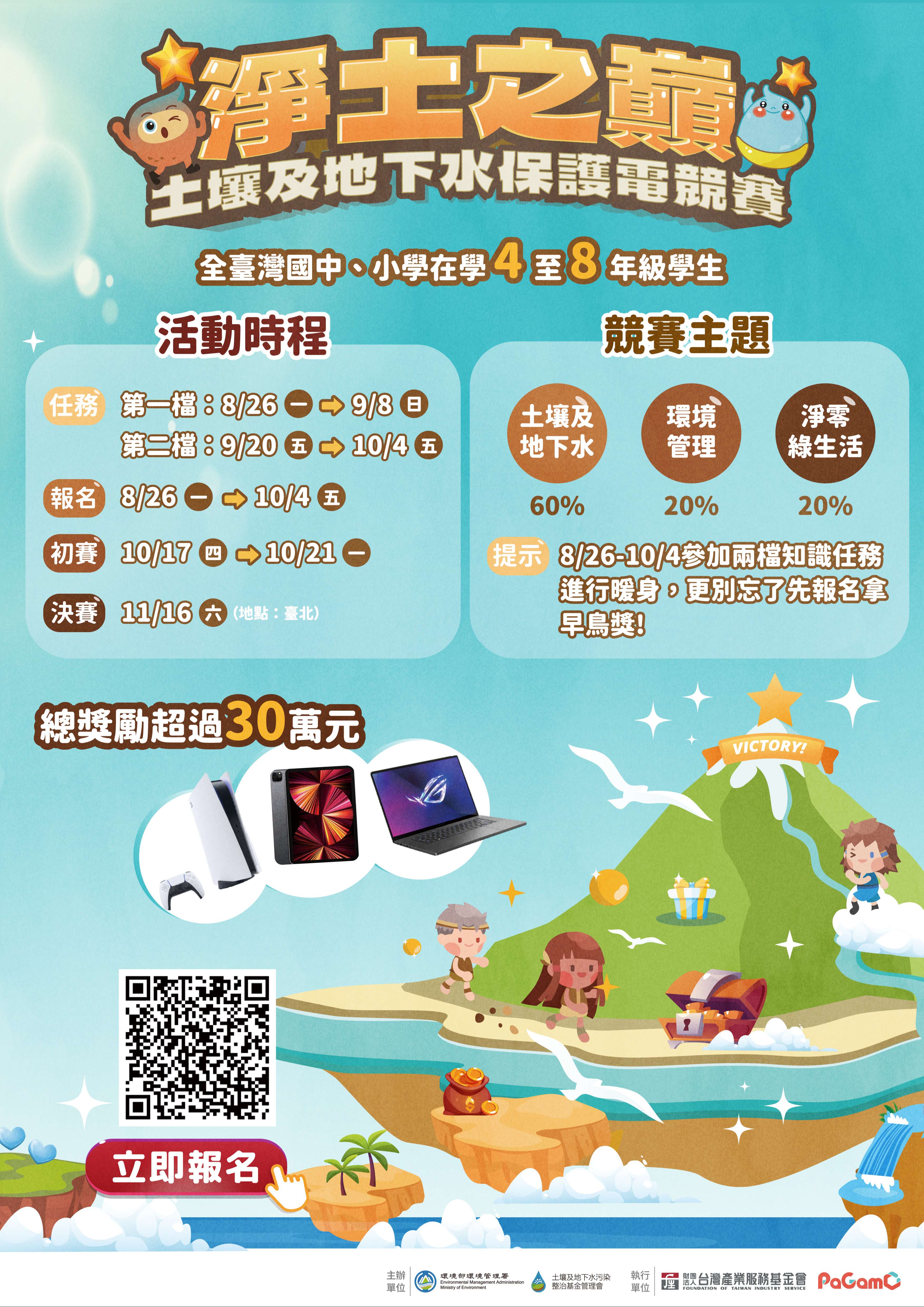 ※為提升全國民眾了解土壤及地下水環境保護之重要,該署特辦理旨揭電競賽活動,競賽對象為國小四年級至國中八年級之在校生。