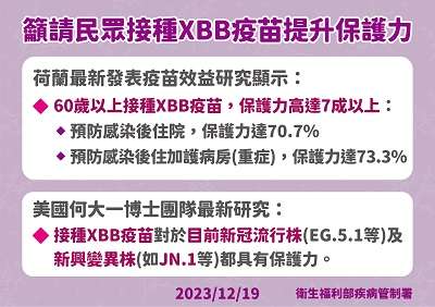 二、國內自112年10月11日起開放出生滿6個月以上民眾均可接種新冠XBB疫苗,依據臨床研究數據顯示,新冠XBB疫苗對於現流行之變異株及JN.1等新興變異株均有保護力,接種疫苗可提升免疫保護力,降低染疫後重症及死亡風險。