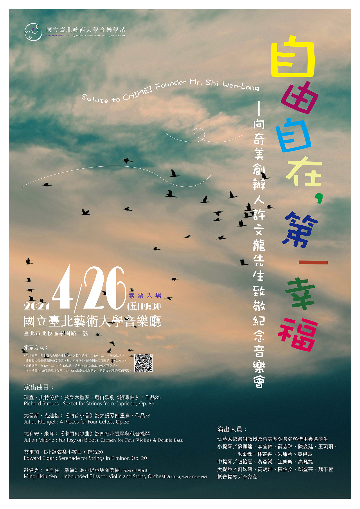 相關活動訊息請至北藝大音樂學系網站(https://music. tnua.edu.tw) 查詢。
