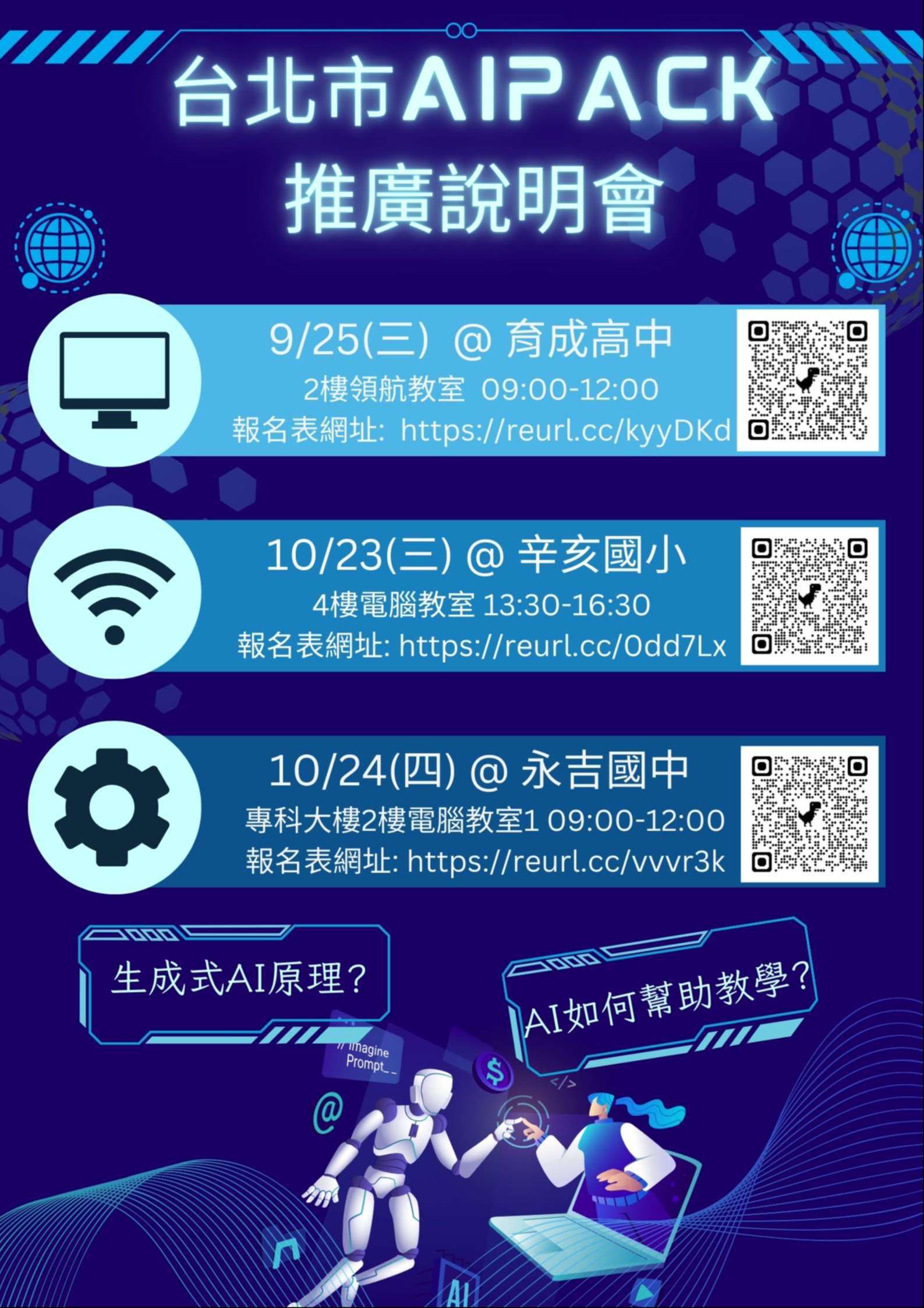 有關「教育部職前與在職教師AIPACK課程推動與教學 能力提升計畫」內容請參酌網頁資訊,網址: https://www.aipack.tw/%E9%A6%96%E9%A0%81。