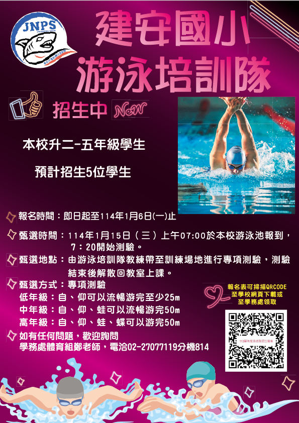 臺北市大安區113學年度建安國小游泳培訓隊招生