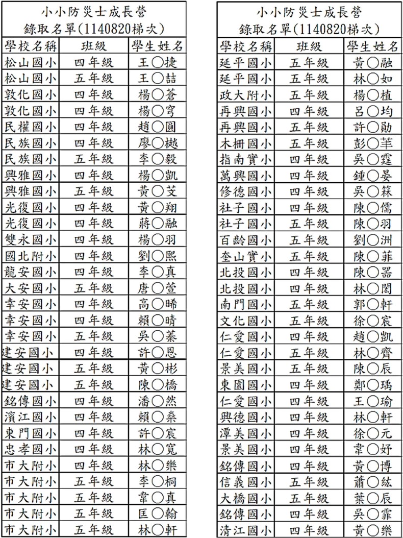 小小防災士成長營-錄取名單(114.08.20梯次)【已額滿】謝謝各位的踴躍報名