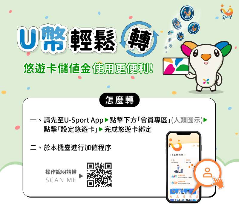 下載U-Sport臺北樂運動App,運動換悠遊卡儲值金,捷運站輕鬆換!