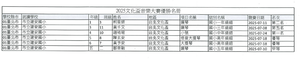 2025文化盃音樂大賽 優勝名冊 如下圖