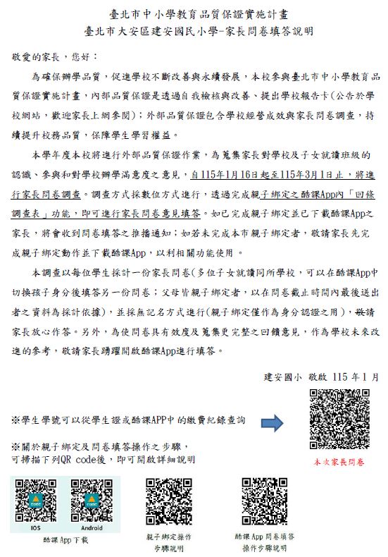 ※為使問卷具有效度及蒐集更完整之回饋意見,作為學校未來改進的參考,敬請家長踴躍開啟酷課App進行填答。