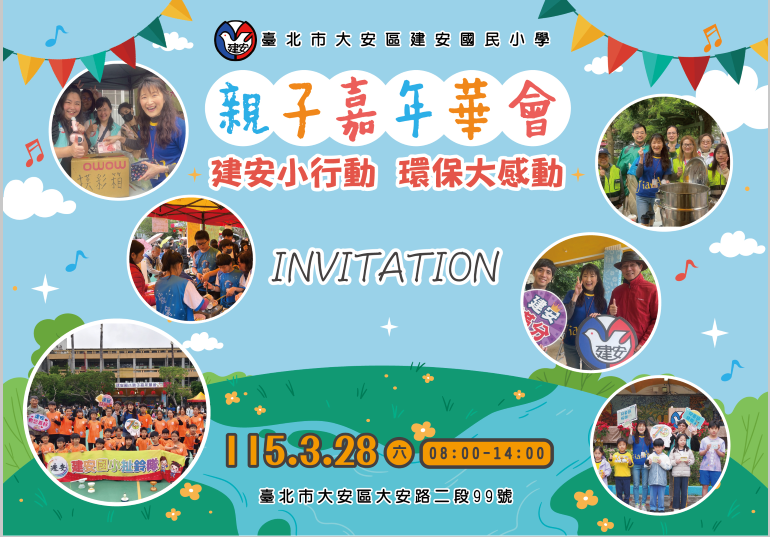 敬邀所有關心建安國小的民眾,樓上揪樓下一起來參加,我們一年一度的親子嘉年華。